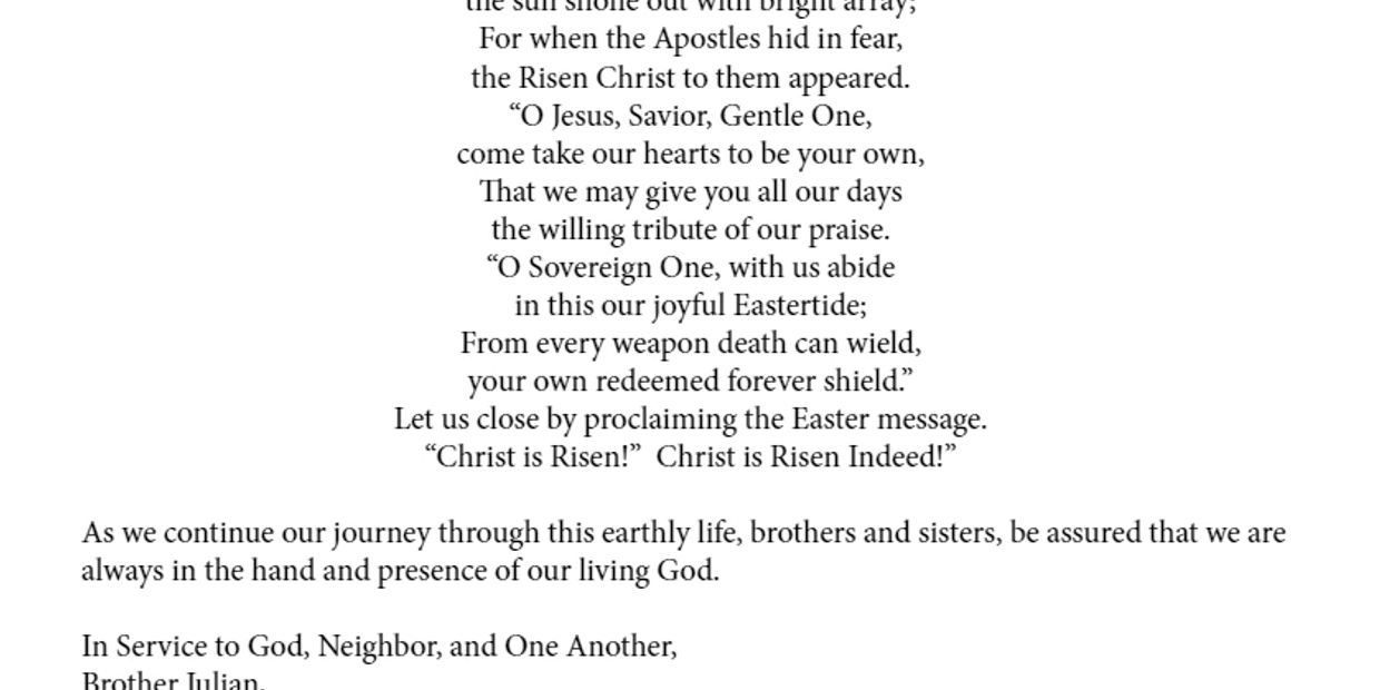 Grace and Peace and immersed with Hope and Joy, Brother Julian, Abbot
